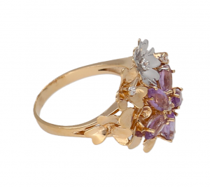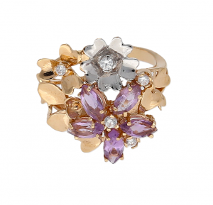 Edelsteine: Amethyst (zentral), Brillanten (Akzentsteine)