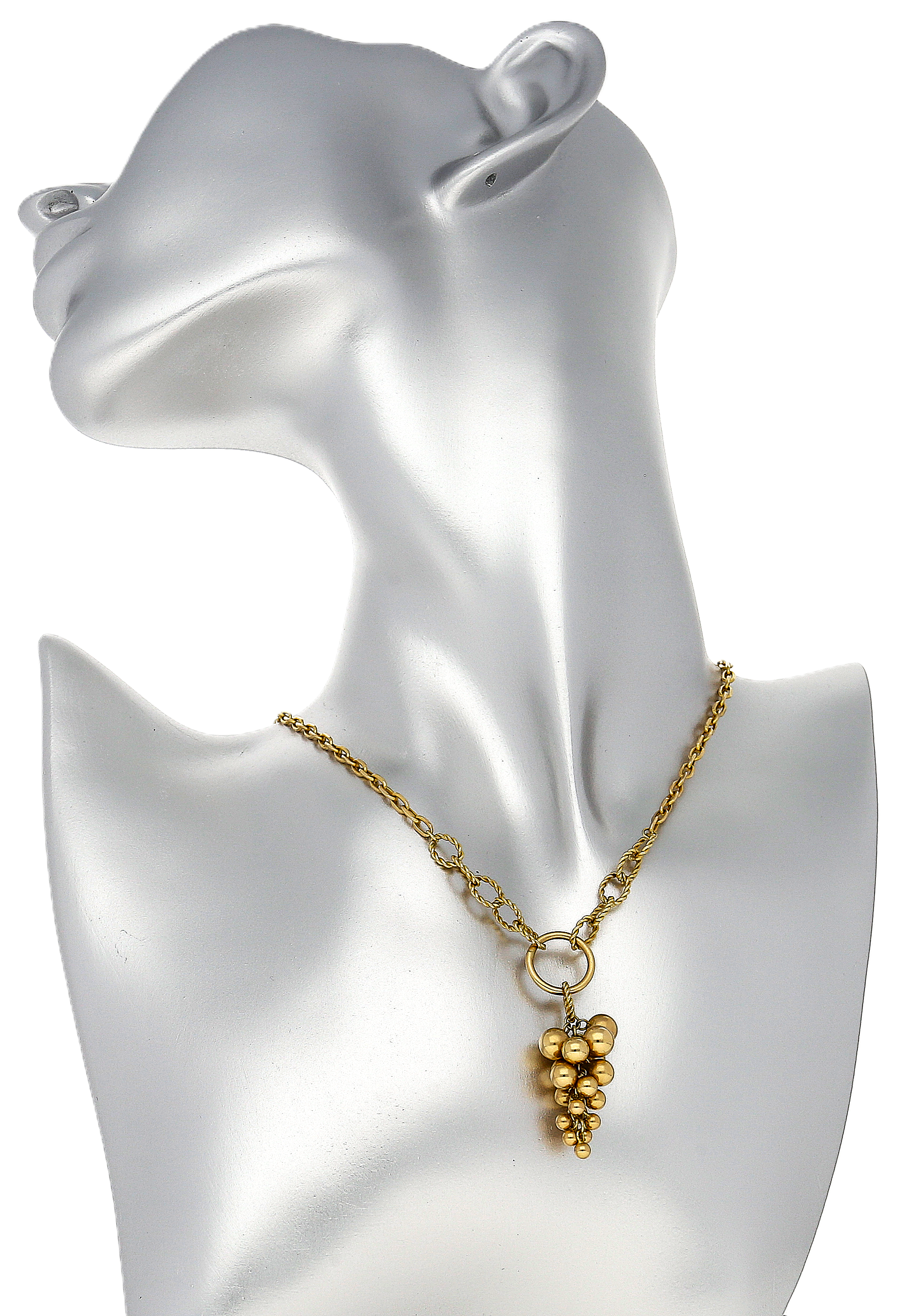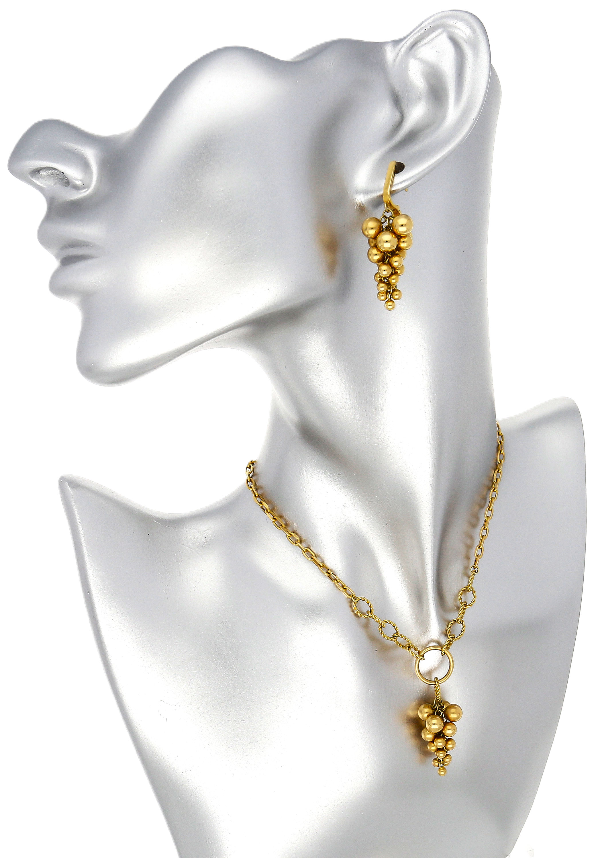 Dieses exklusive Schmuckset aus hochwertigem 585er Gelbgold (14 Karat) besticht durch seine detailverliebte Gestaltung und seine elegante Wirkung. Der Blickfang des Sets ist ein filigran gearbeiteter Anhänger in Form einer Weintraube, der an einer stilvollen Goldkette hängt. Ergänzt wird das Ensemble durch passende, beweglich gestaltete Ohrringe im selben Trauben-Design, die bei jeder Bewegung sanft mitschwingen – lebendig, edel und ausdrucksstark.