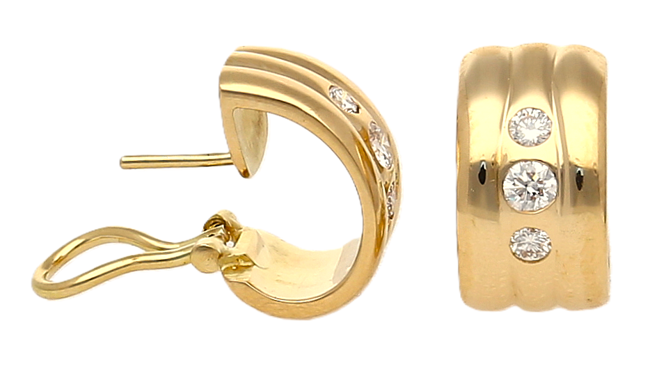 Diese edlen Ohrringe aus 750er Gelbgold vereinen klassische Eleganz mit hochwertiger Verarbeitung. Die sorgfältig eingerieben gefassten Brillanten mit einem Gesamtgewicht von ca. 0,58 Karat bestechen durch ihre außergewöhnliche Qualität und ihre weiße Farbe. Der sichere Clipverschluss sorgt für angenehmen Tragekomfort.