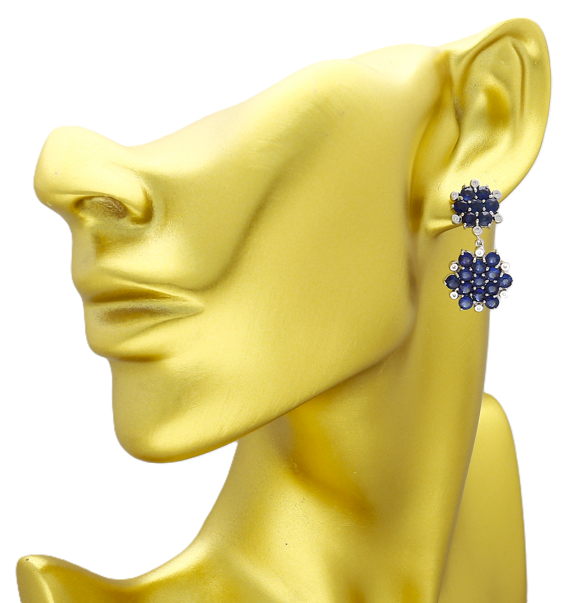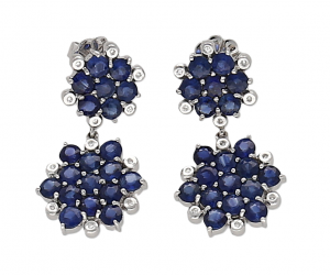 Besonders edel: Jeder Stern ist besetzt mit fein funkelnden Brillanten sowie tiefblauen Saphiren – ein stilvoller Kontrast, der die Sternform noch mehr zum Strahlen bringt.