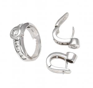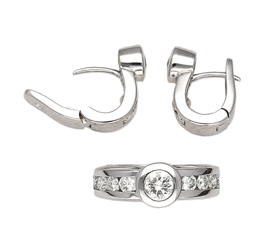 Edles Set aus 585er Weißgold mit Brillanten–Ring & Ohrringe
