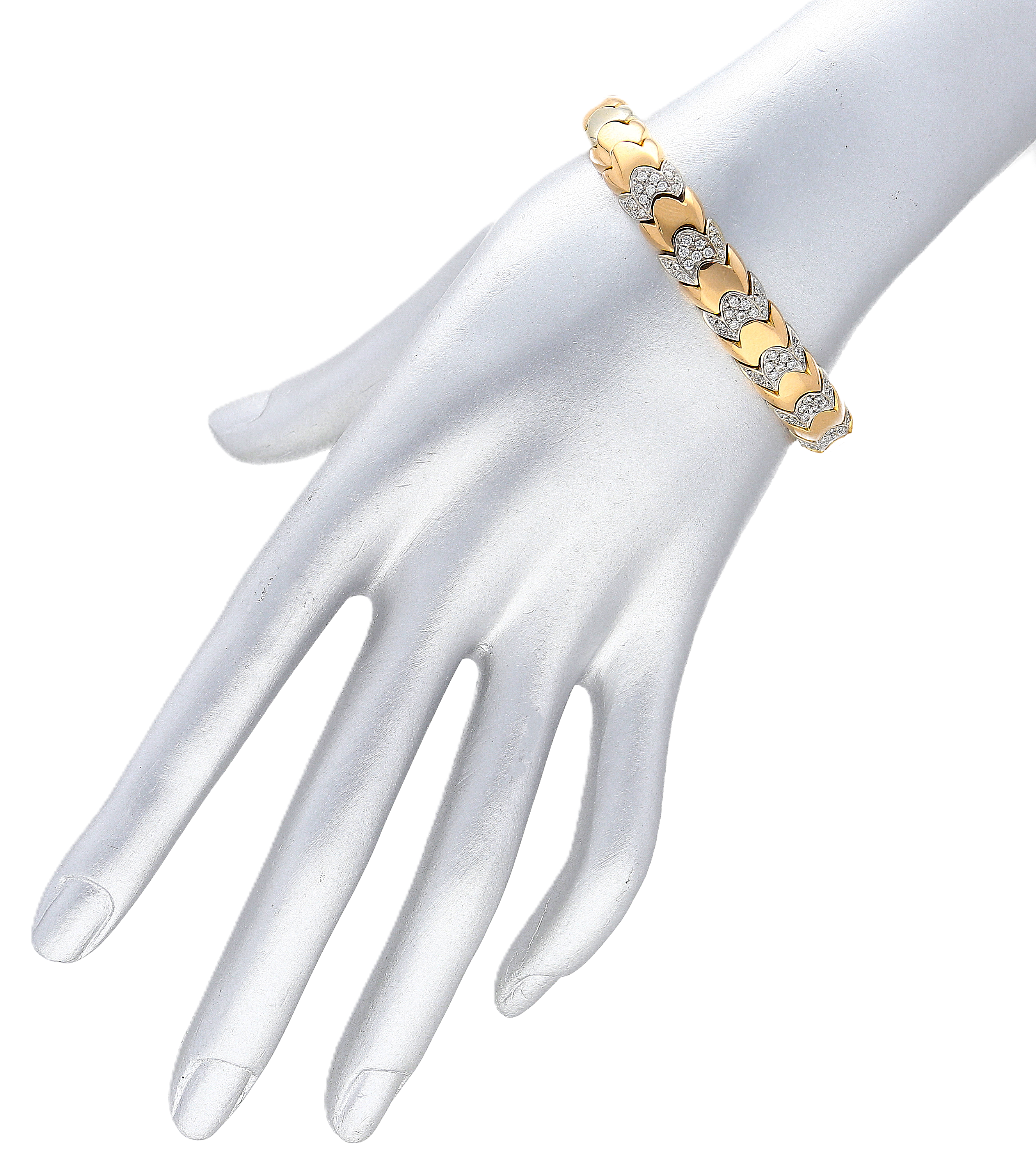 Dieser hochwertige Armreif besticht durch seine edle Kombination aus 750er Rosé- und Weißgold (18 Karat) sowie seine feine Verarbeitung. Das Design ist klassisch-elegant und zugleich modern – ideal für stilbewusste Damen, die besonderen Schmuck schätzen.