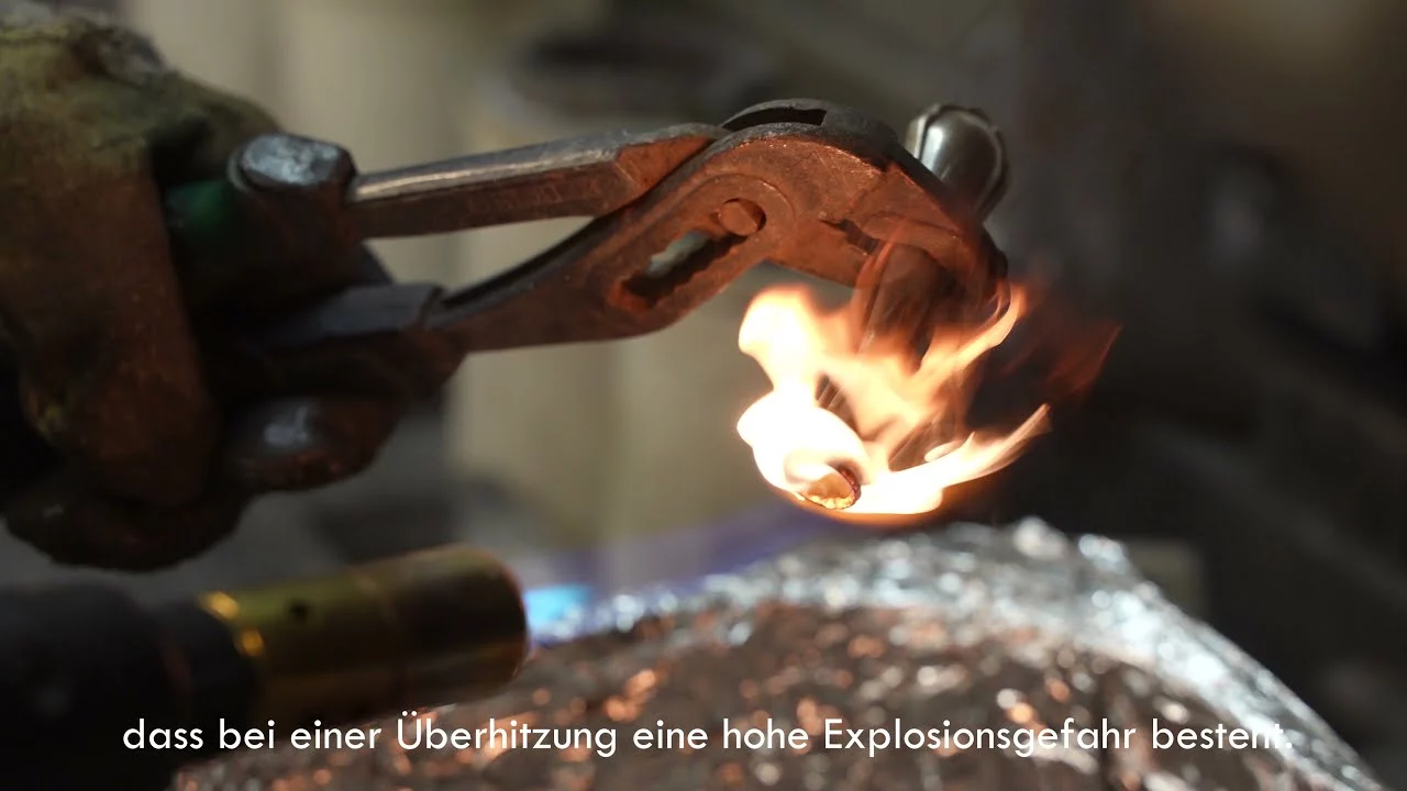 3. Möglichkeit: Messerklinge ist mit speziellem Wachs im Griff befestigt, welcher bei einer Temperatur von 50° bis 60° C erhitzt und unter Druck in flüssiger Form hinein gegossen wird.